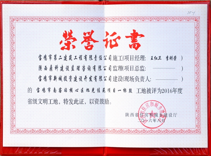 2016年省級文明工地(旭光佳苑一期)
