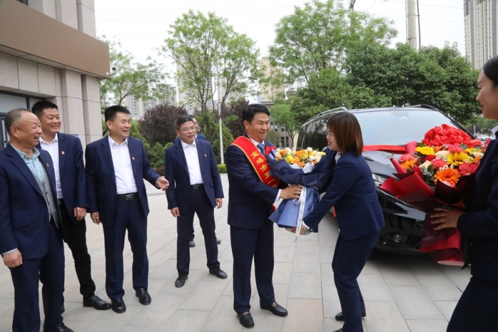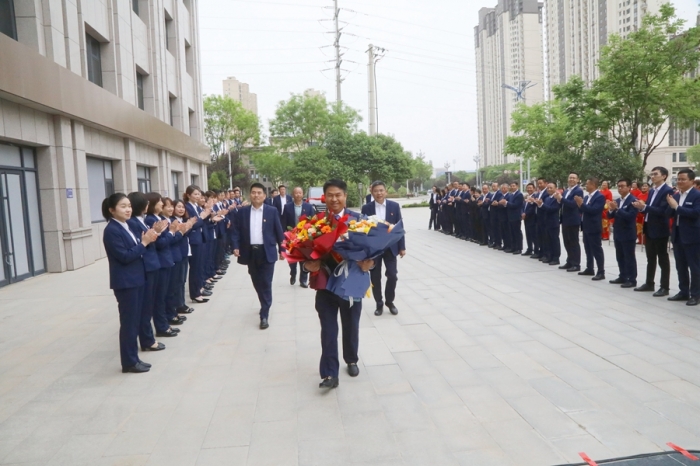 鑼鼓喧天報(bào)喜訊,鮮花掌聲迎勞模。集團(tuán)公司高層領(lǐng)導(dǎo)、總部全體員工及三十九項(xiàng)目部員工在總部辦公大樓前迎接寶雞市五一勞動(dòng)獎(jiǎng)?wù)芦@得者李紅軍同志載譽(yù)歸來(lái)。